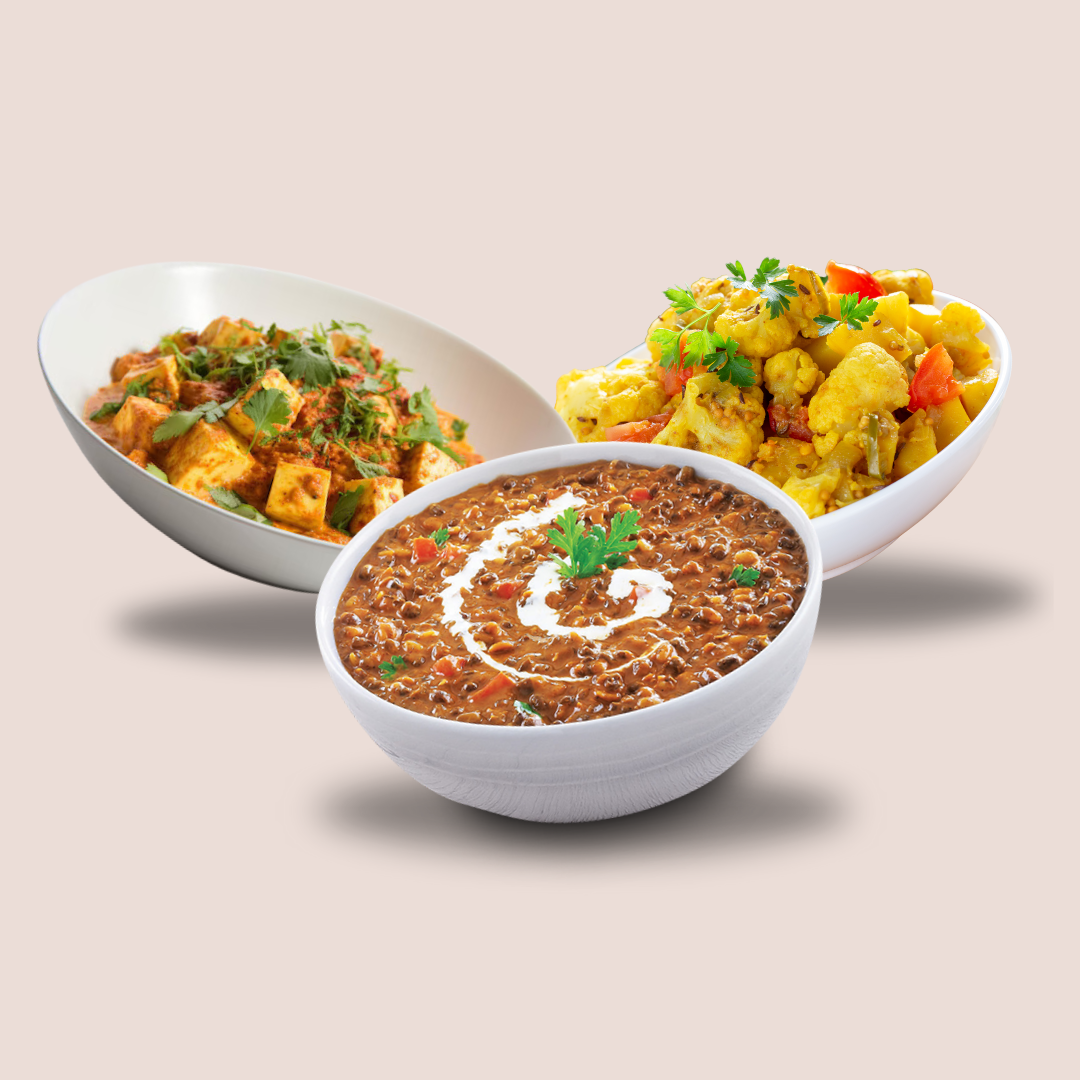 Each order includes three 280ml boxes of two types of freshly cooked vegetarian curries, made with the fresh, natural, and finest ingredients and spices. Indulge in the richness of authentic Indian flavors with our Veg Curries delivered fresh to your doorstep, every time.